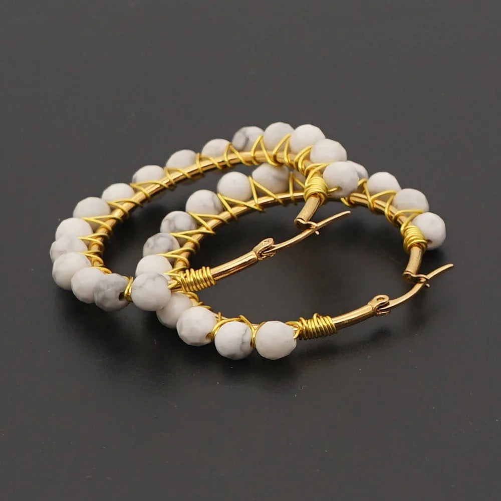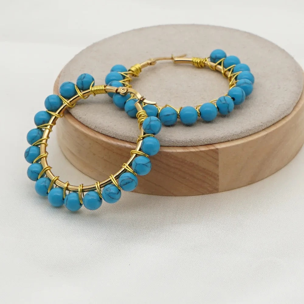 Look no further for earrings that make a statement! Get ready to turn heads with our Ain't That A Bead! hoop earrings. Be stylish and on-trend with their natural stone look and beaded detailing - ain't that something!
