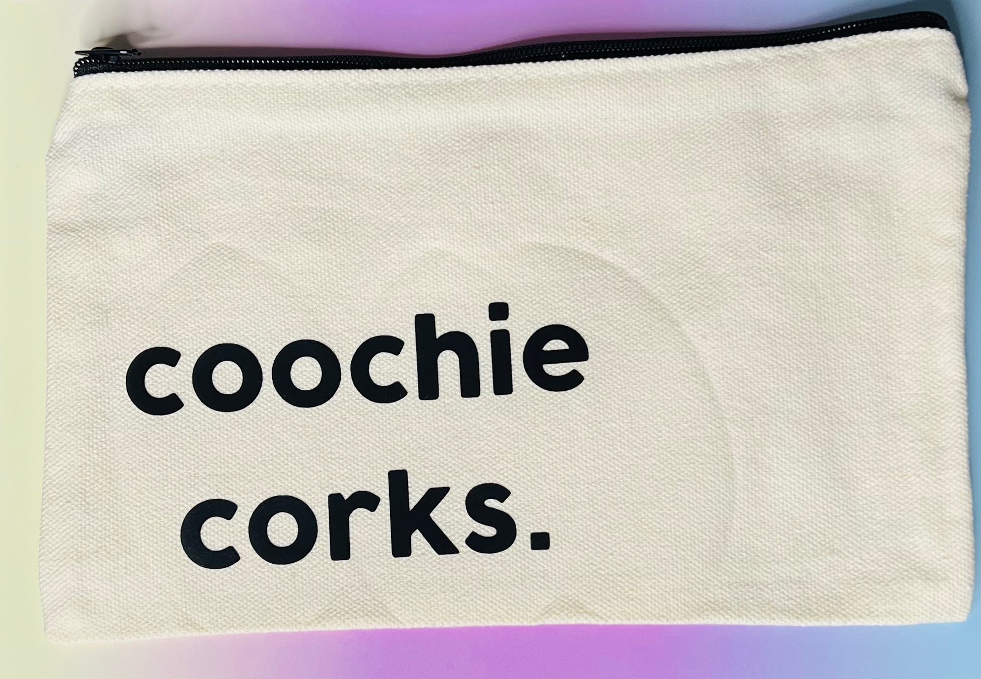 Tired of the same ol' bag for your menstrual must-haves? Mix it up with Coochie Corks! This snazzy 8.3 x 5 canvas bag is perfect for putting a humorous spin on your time of the month. Keep your necessities close and your style even closer with Coochie Corks! Compact enough to fit in your pocket or purse, so you can keep your cycle in check and your sass level high.