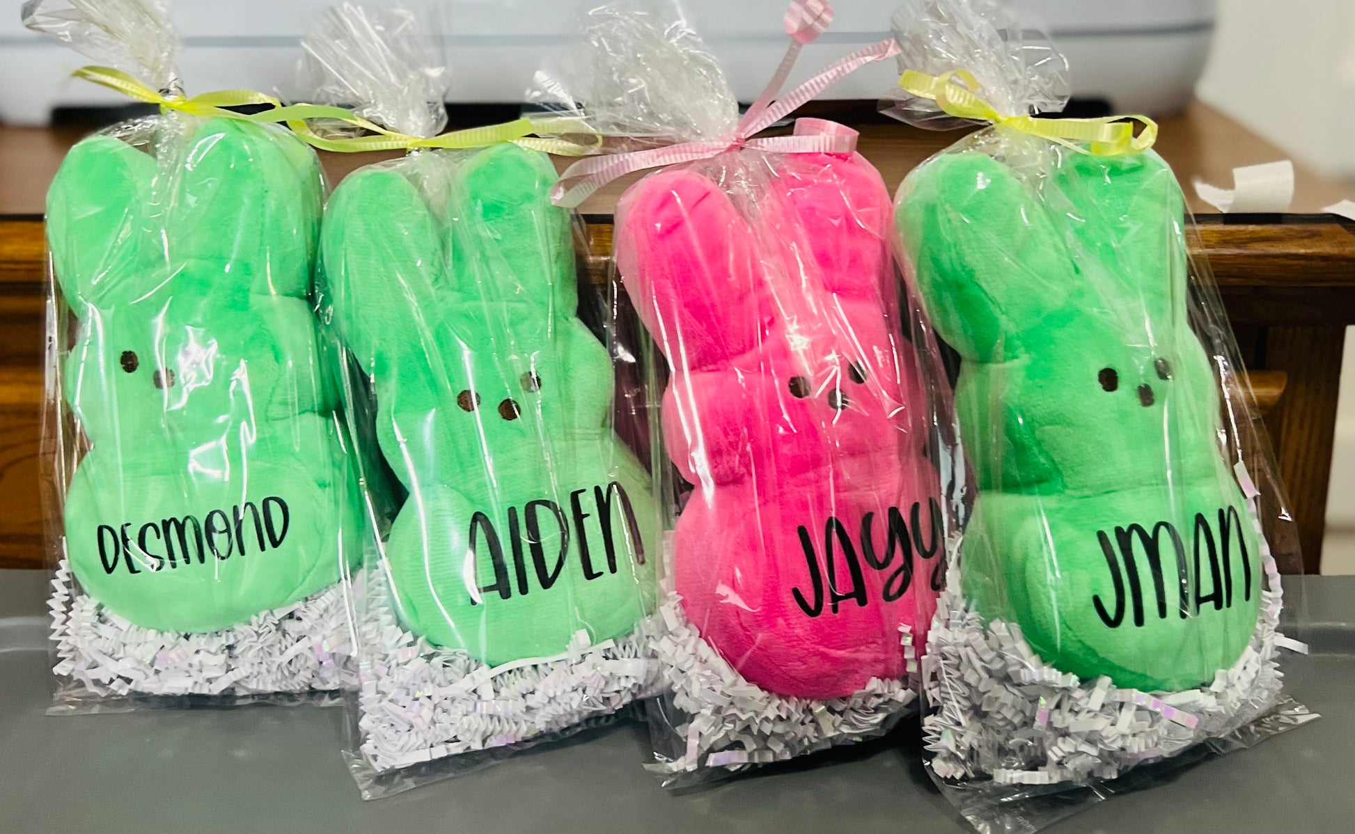 These bunny plushies are sure to hop to the top of your kid's favorite things list! Personalize them with their name and pick from pink, green, or purple; watch as their eyes light up with excitement! These 6-inch bunnies are a great way to hoppily celebrate Easter!