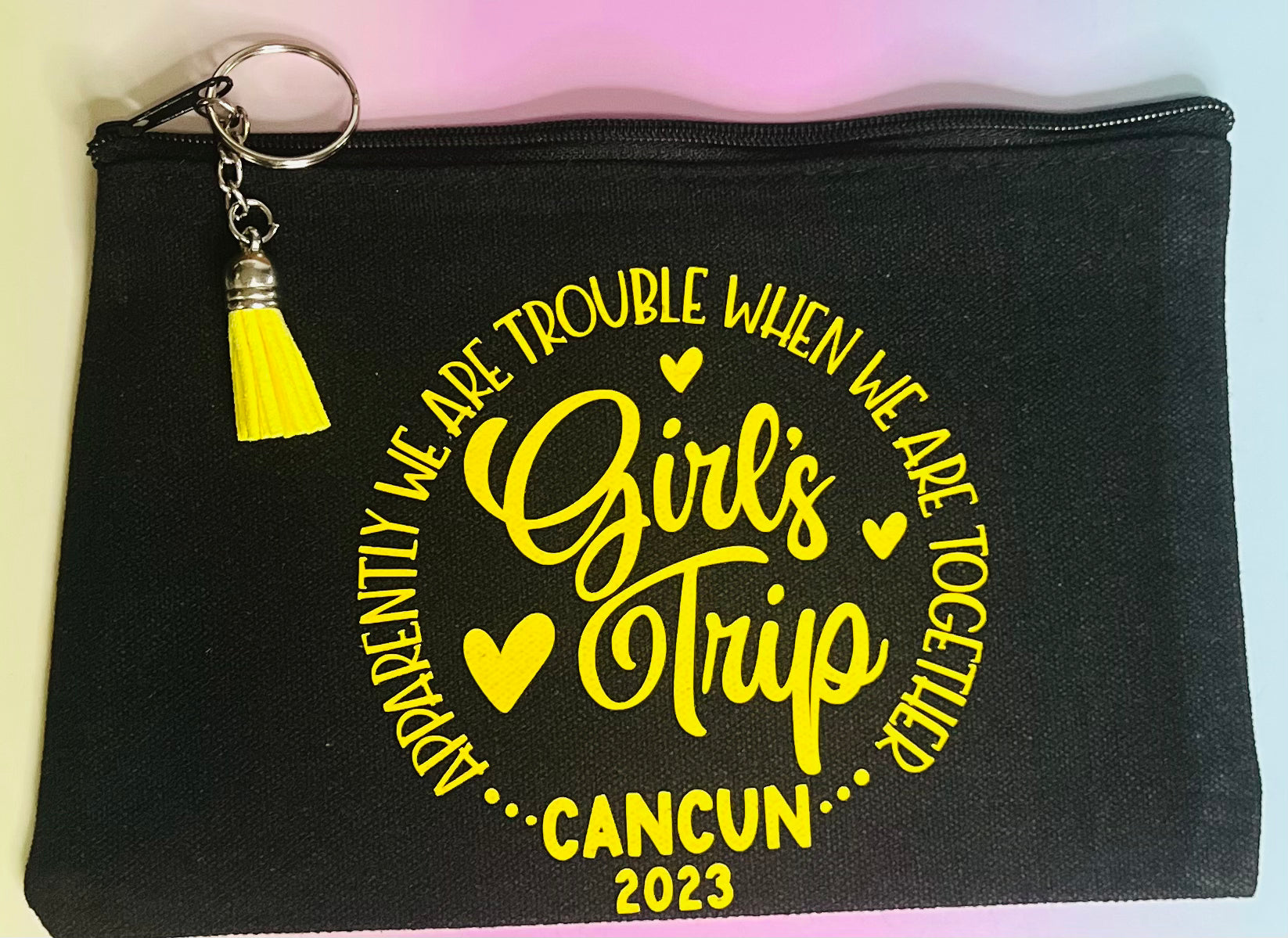 No matter how long the trip, be ready for the ride with the “Girl’s Trip” canvas bag! Perfectly sized (8.3 x 5) for stashing toiletries, cash, your phone, and ID - this mini-bag is the perfect accessory for any gal-adventure. And trust us, it'll fit right in your purse or bag! So, get your girls a small but memorable gift that keeps on giving!