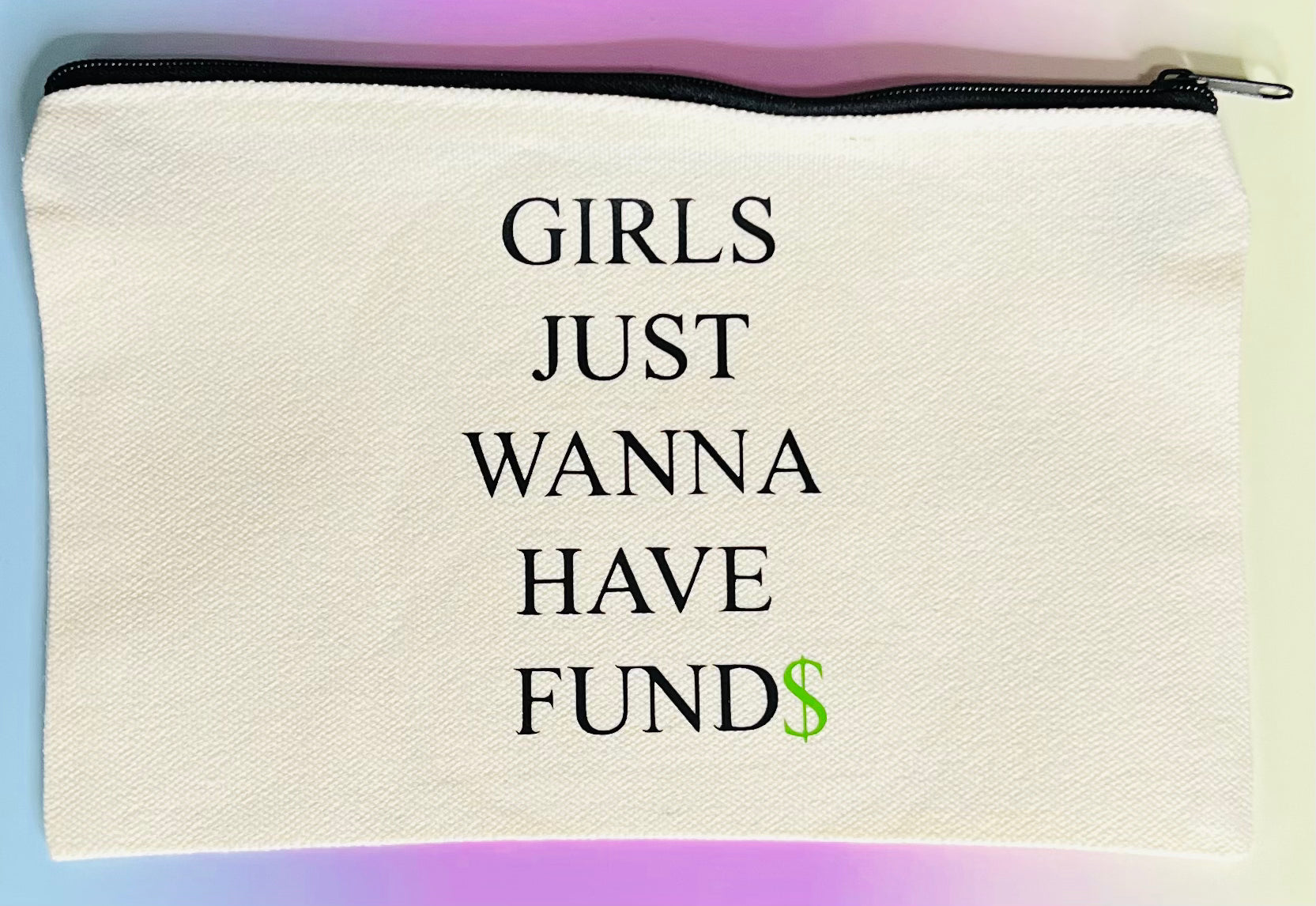 Secure your money and look super cute while doing it with the "GIRLS JUST WANNA HAVE FUND$" small canvas bag! Small enough to fit in any purse or bag, but big enough to keep all your money safe. Fun and stylish, this bag will have you livin' it up in no time.