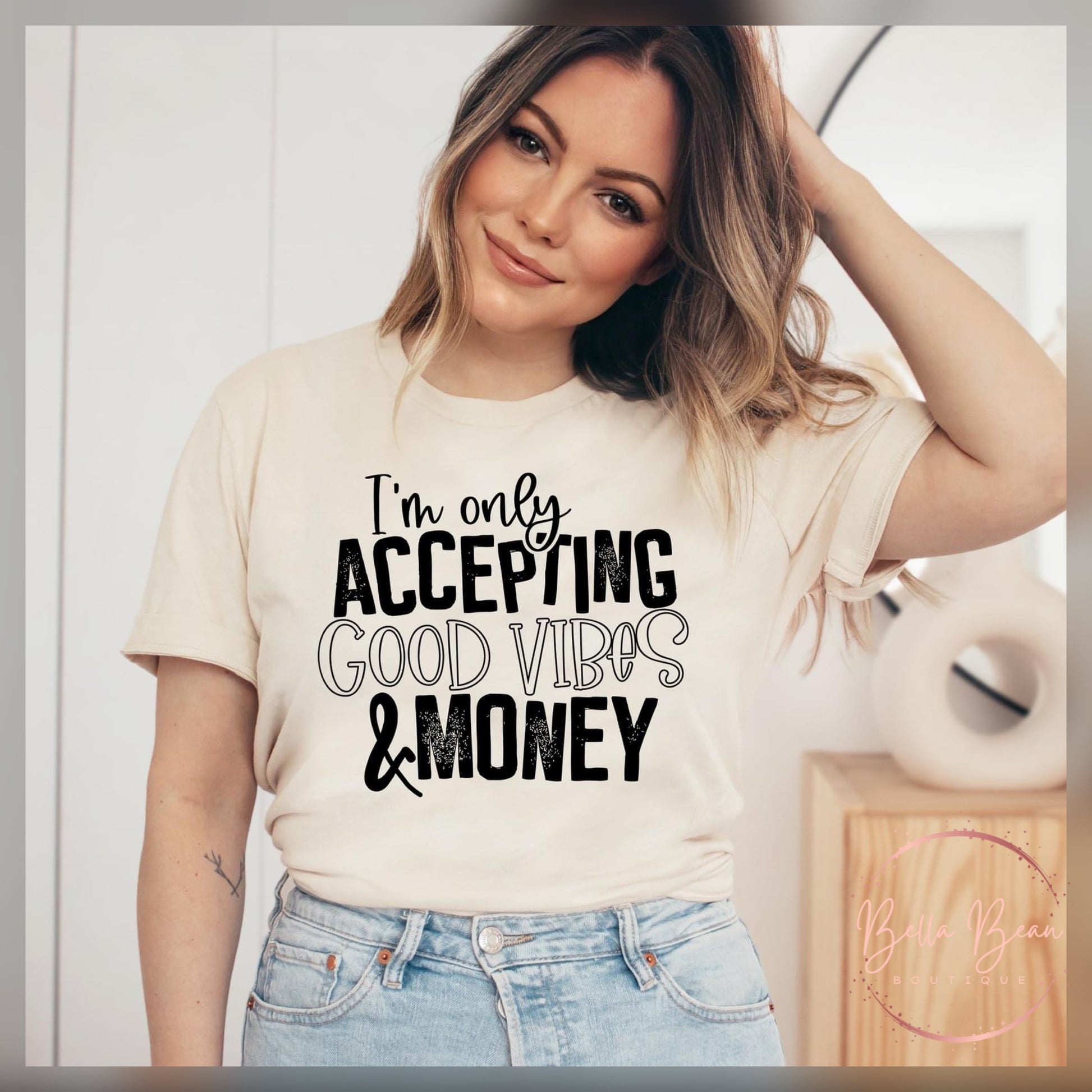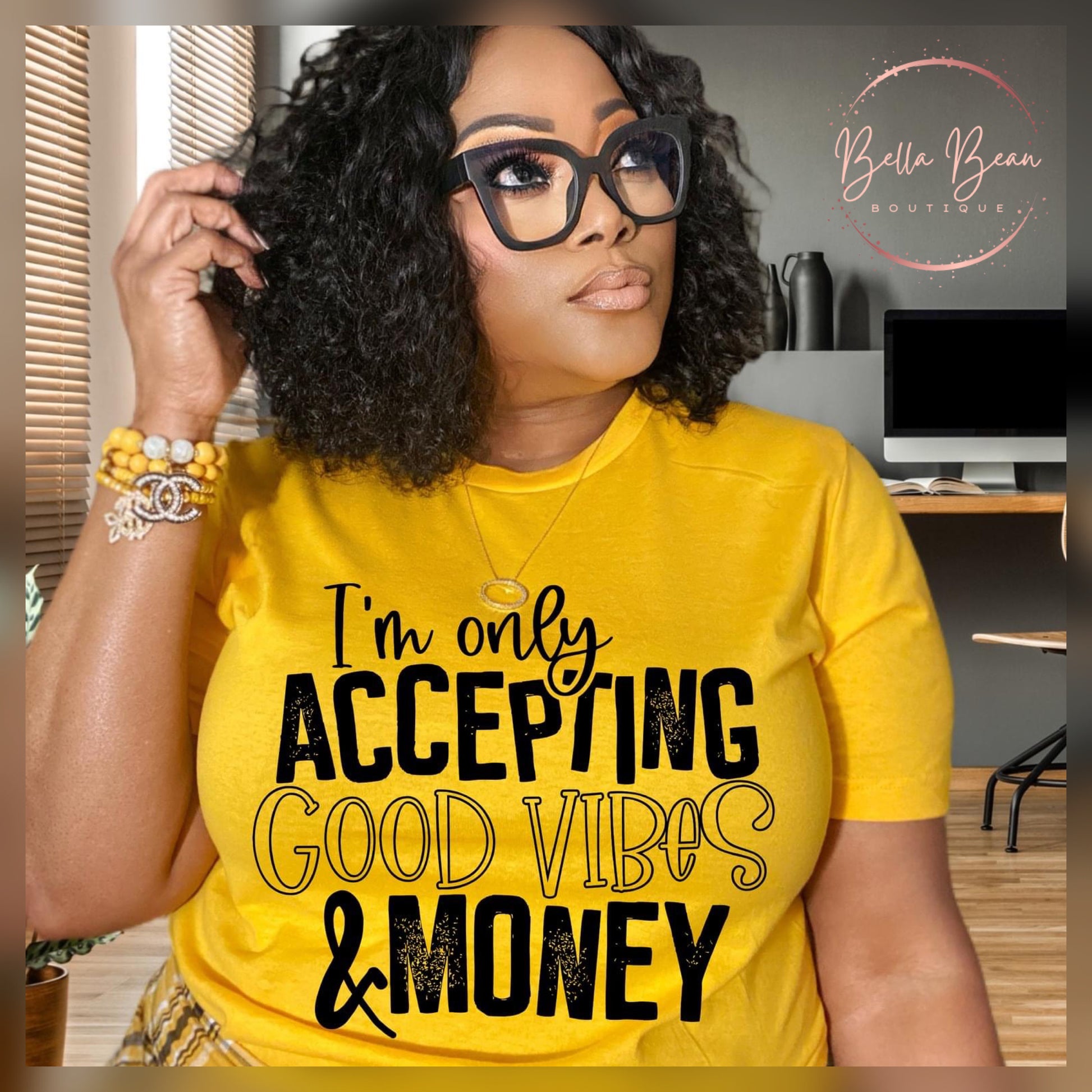 Good Vibes has got you covered - literally! This graphic tee features a unique design that'll let you show off your mood while you accept good vibes and money! So be sure to grab one and start radiating those good vibes!