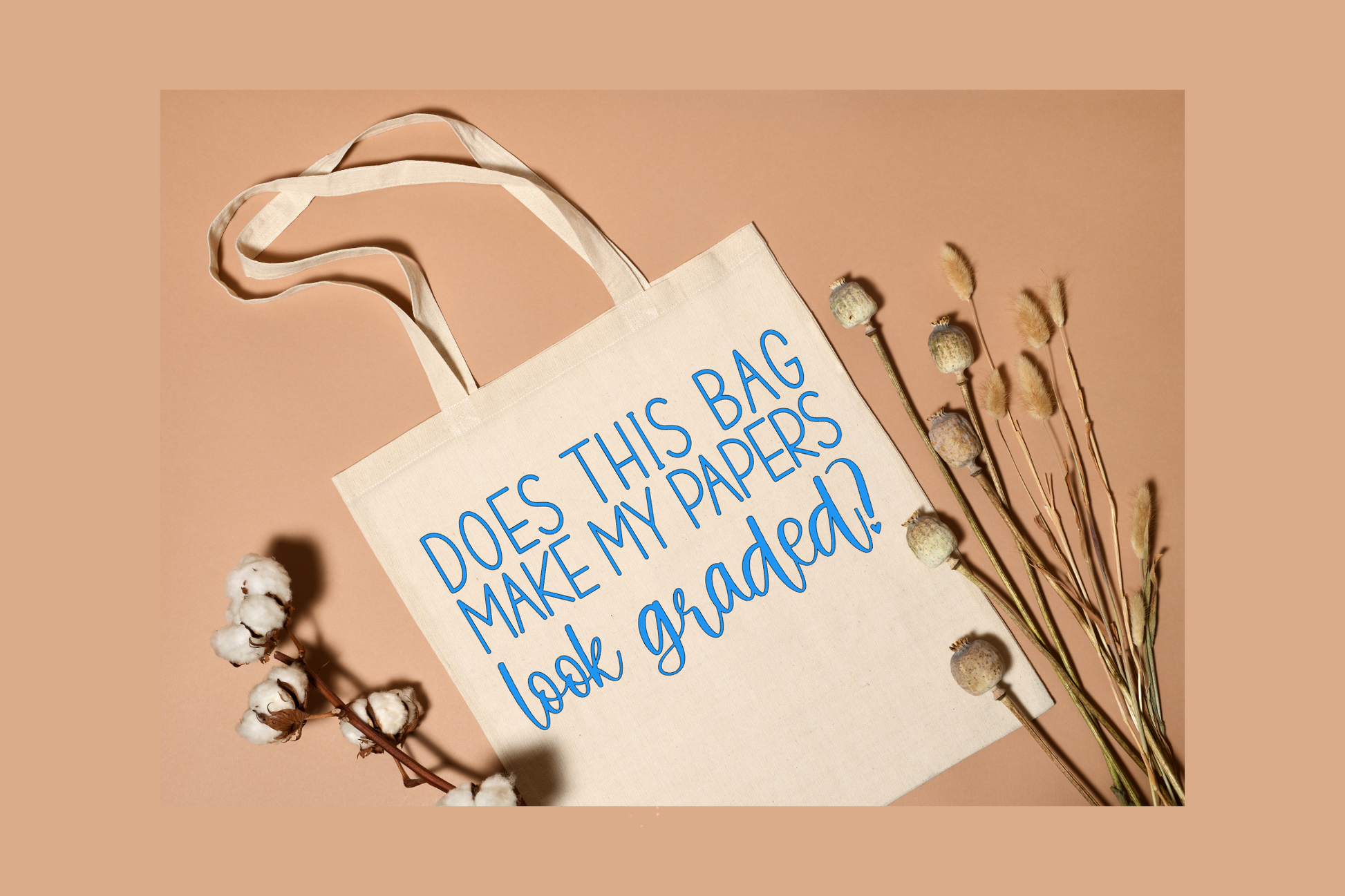 This tote is perfect for those teacher-types that have had enough of "ungraded" papers! With its cheeky slogan, "Does this bag make my papers look graded?", it's sure to bring a smile and maybe even a chuckle to anyone who needs a bit of grading motivation. Who says you can't have fun while grading?