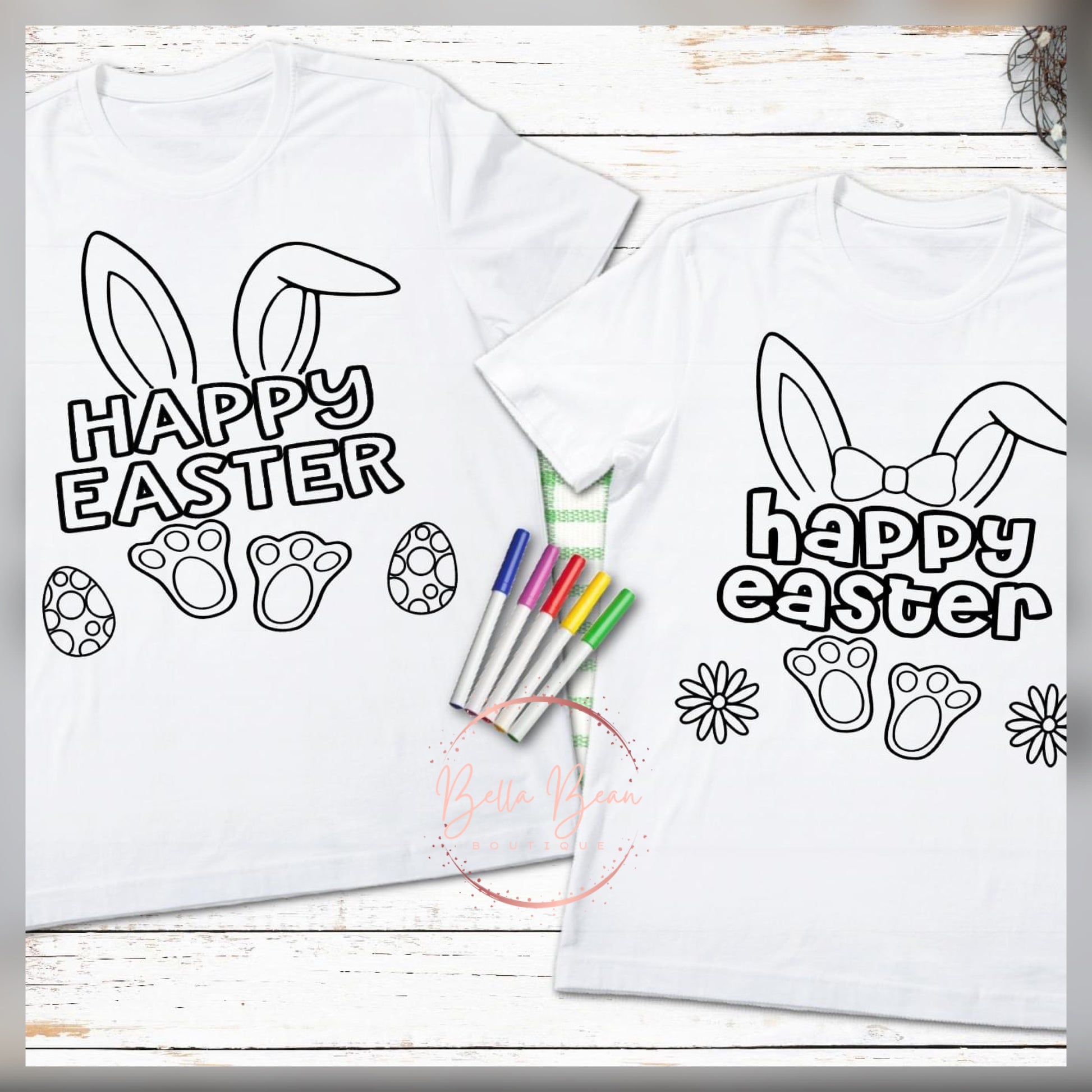 Let the fun (and messes) begin! This Happy Easter Coloring Shirt is perfect for creative, energetic kiddos who love to express themselves. Get 1 pack of washable markers with your shirt, and color to your heart's content - it's washable, so you can do it all over again!