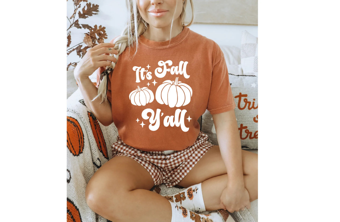 Get ready for autumn with our It's Fall Ya'll tee! This quirky and playful shirt will show off your fun side while you enjoy the crisp air and colorful leaves. Perfect for any fall activity, this tee is a must-have for the season. Don't miss out, grab yours today!