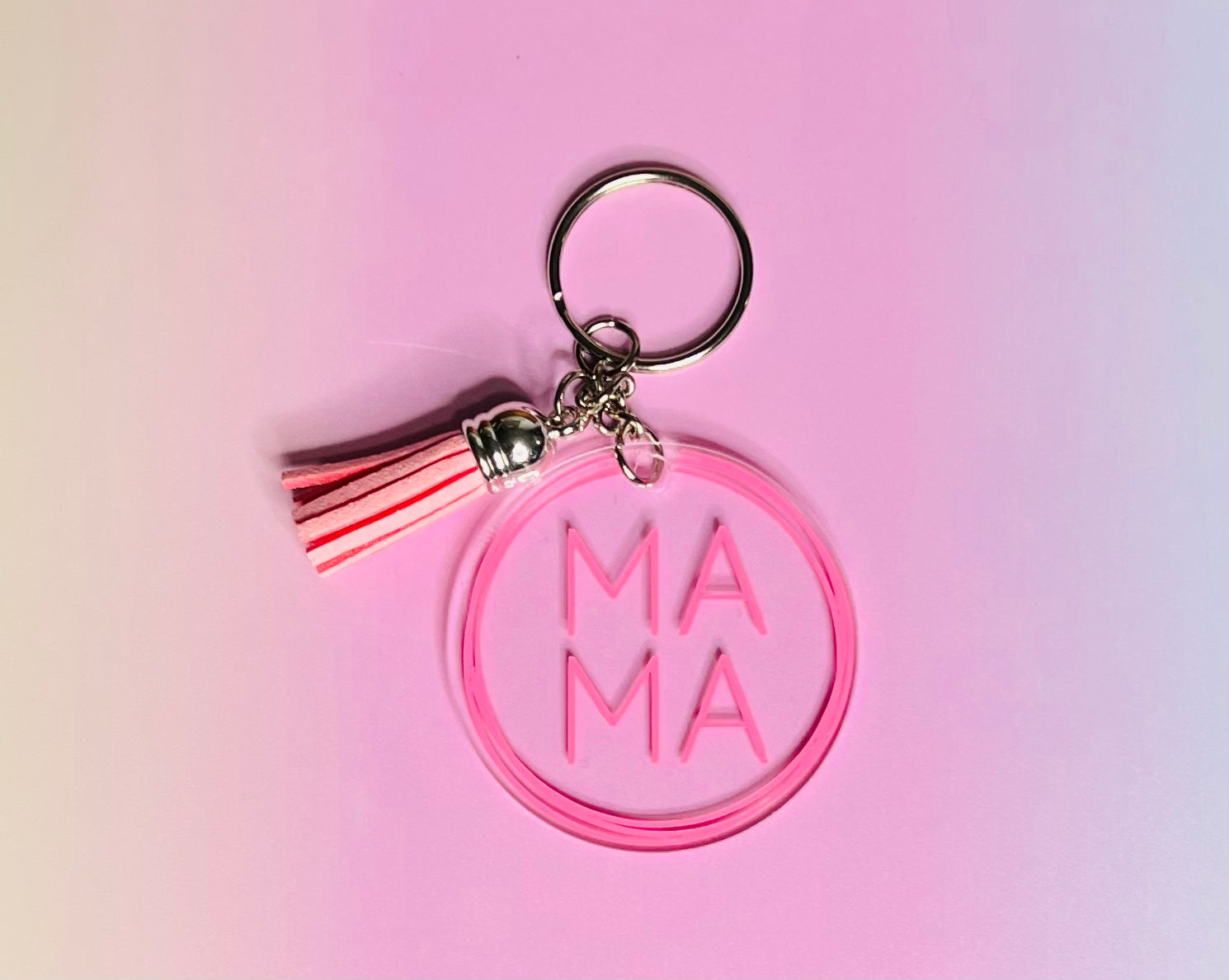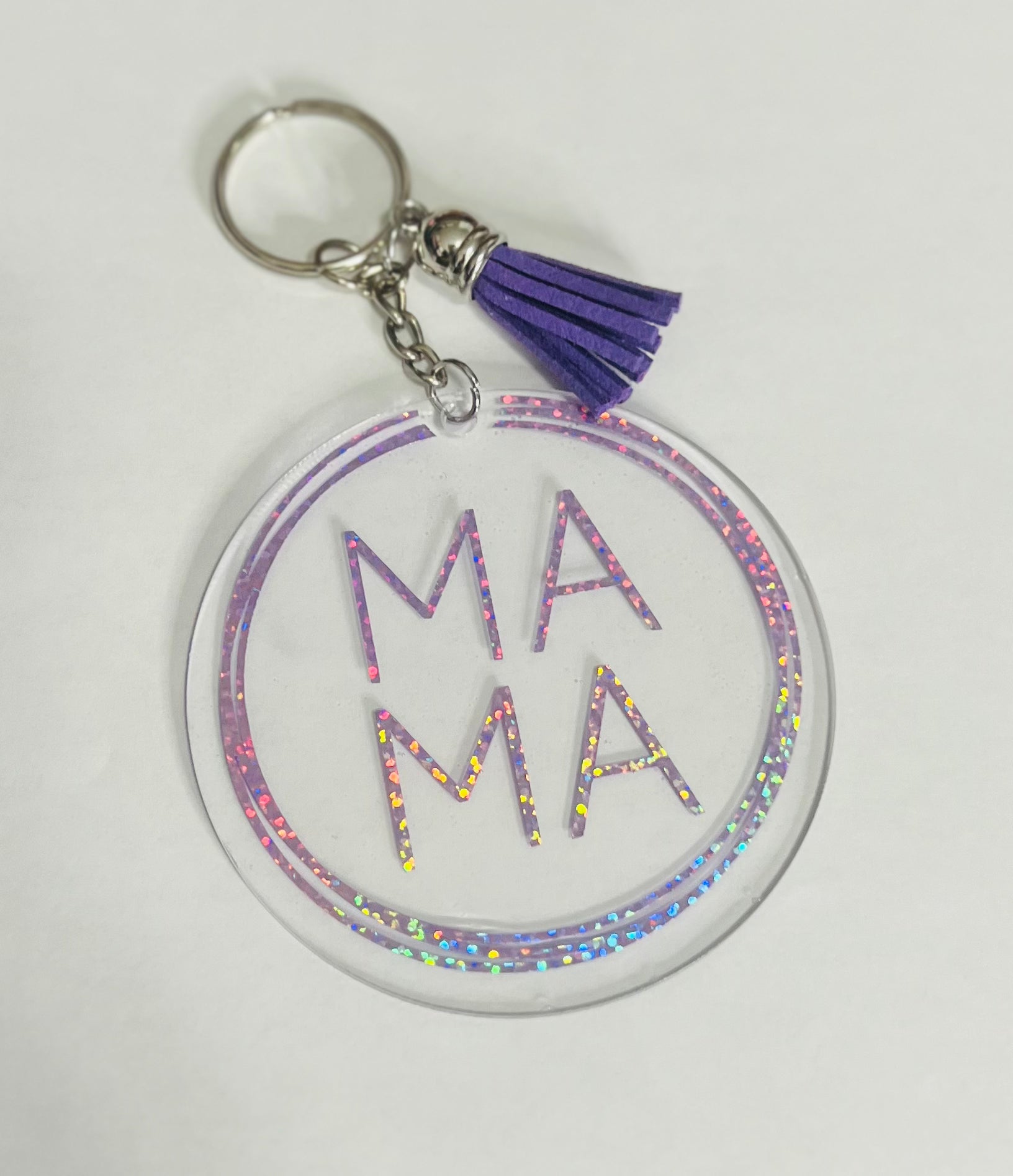 Introducing your new favorite fashion accessory - the MAMA keychain! With its holographic design, it's a fun way to spice up any key ring . Show off your style, and add a sparkle to your look with this cute and quirky keychain.