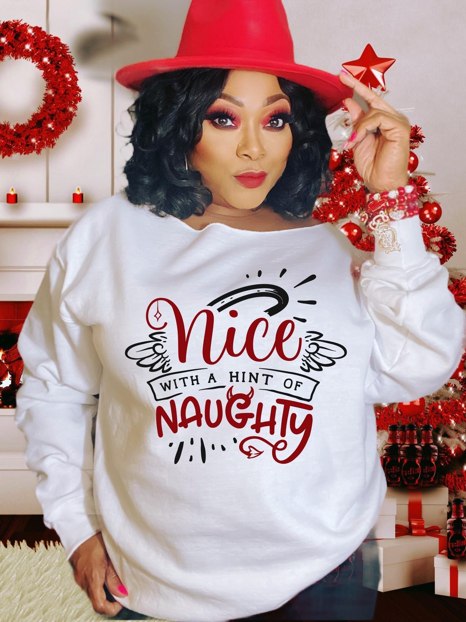 Celebrate the holiday season in style with this festive Naughty and Nice graphic tee. Perfect for adding a bit of spice to your seasonal wardrobe, this cozy top features a cheery Christmas design with a hint of sass! Show off your naughty side this winter!