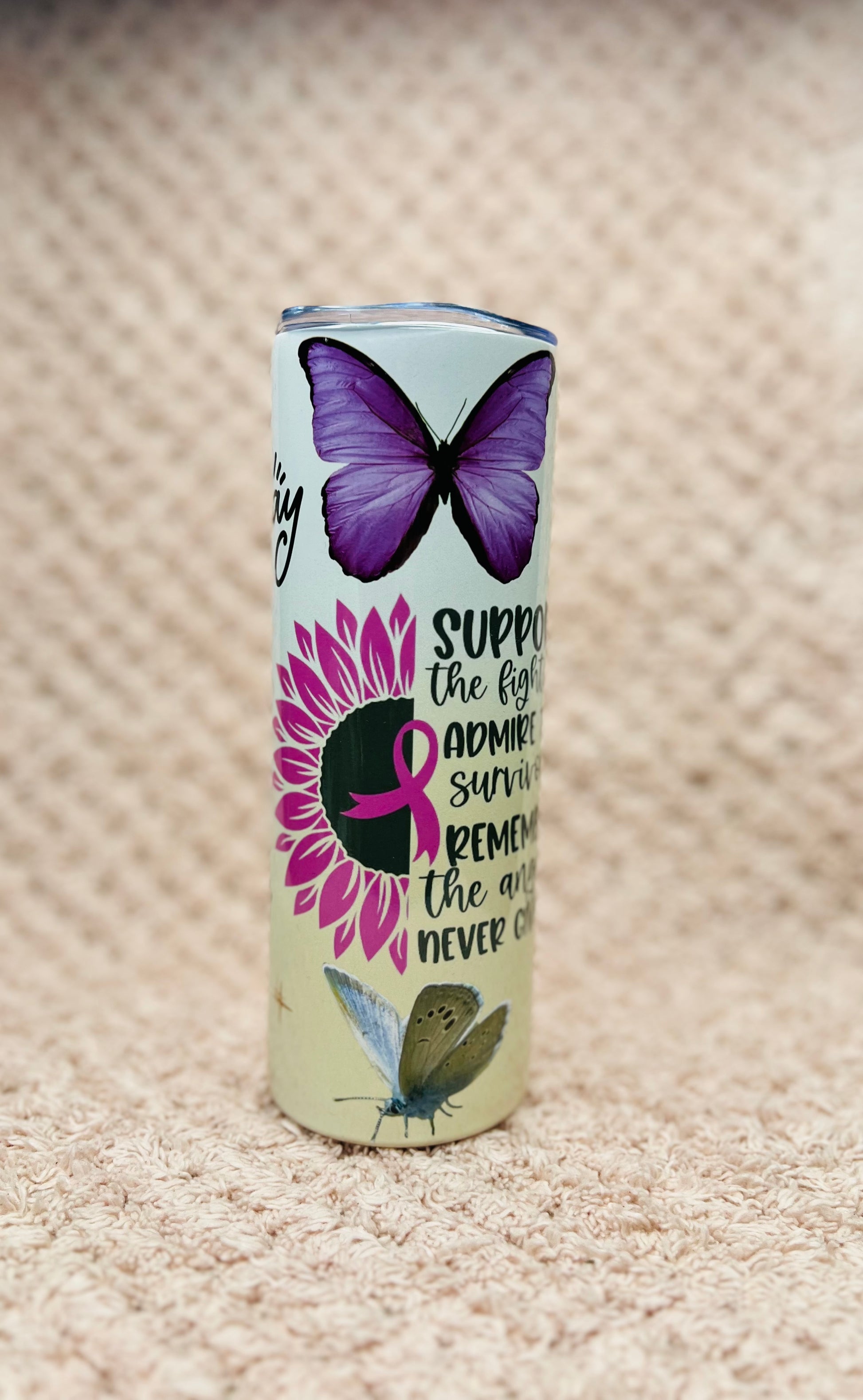 Freshen up your drinks with this "Never Give Up" tumbler. Show your support for the fight against breast cancer with this stylish and meaningful stainless steel design. Stay hydrated and motivated to never give up!