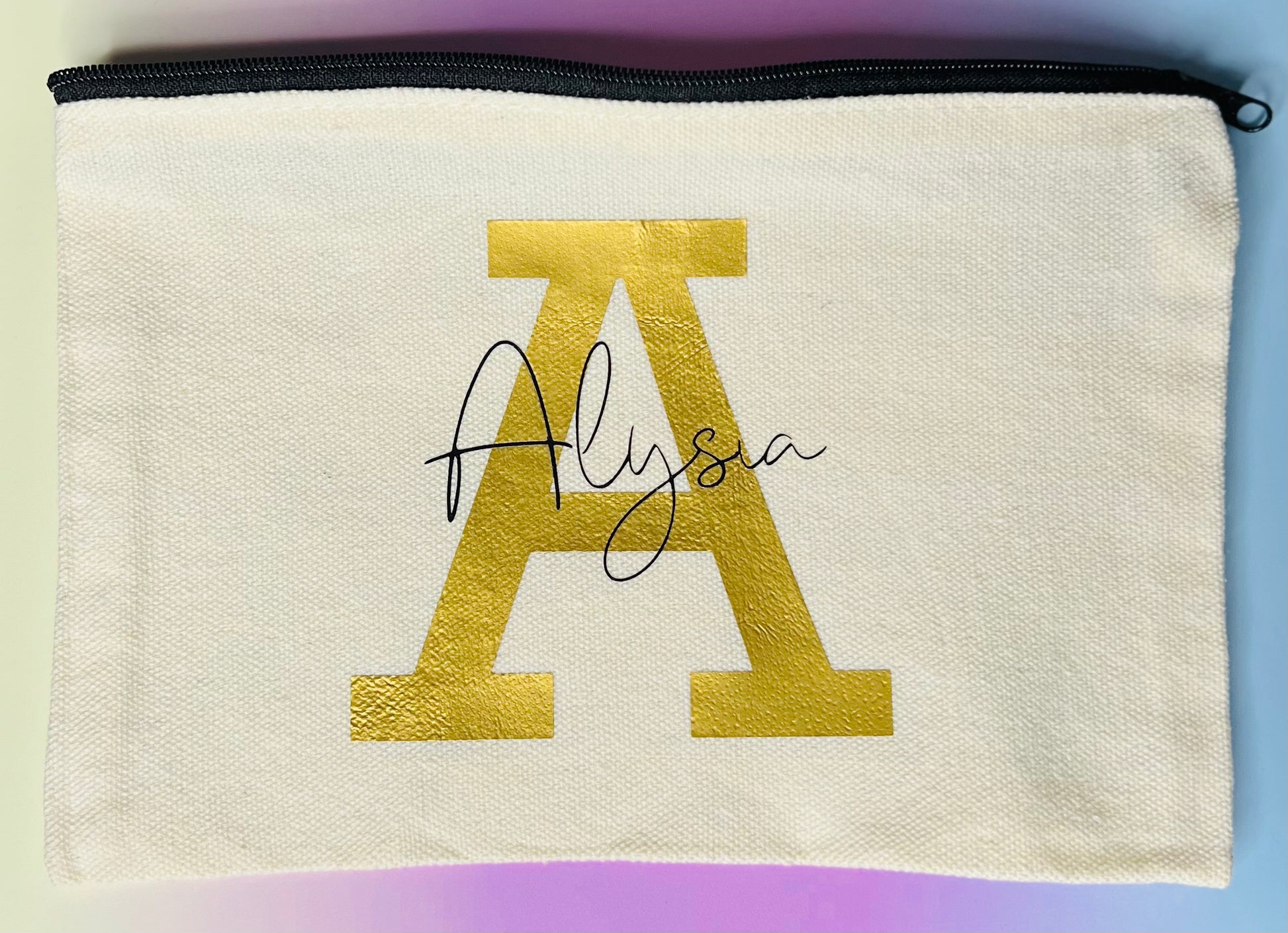 Make a bold statement with this Personalized Name and Initial bag! Durably crafted with canvas, this bag is great for slipping into a purse, luggage, or tote, and making sure that you don't forget your name (or your style)! Add some personality to your look and grab yours today!