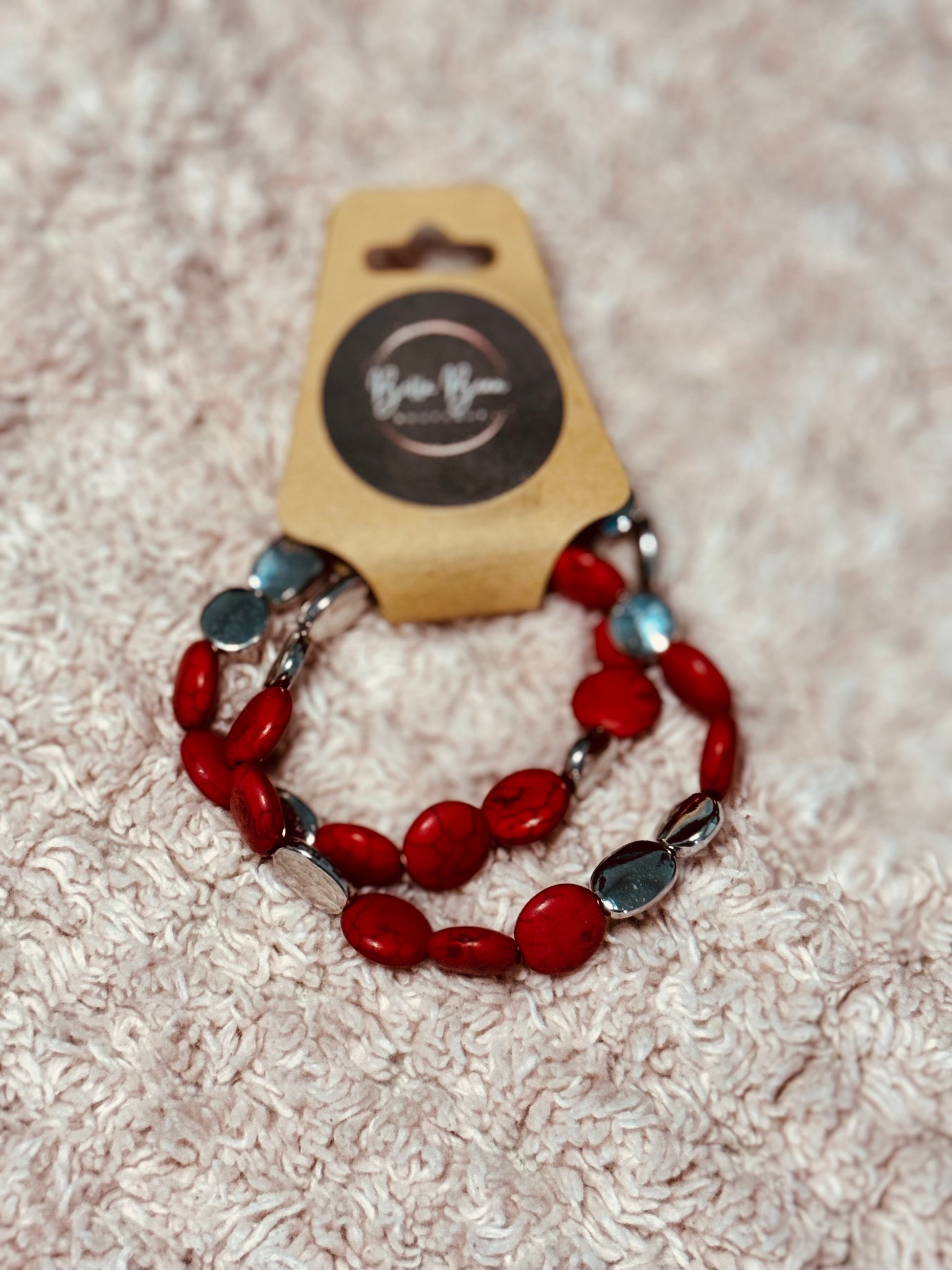 Introducing Poppin' Sedimentary! This double bracelet set features a bold red and silver design inspired by layers of rocks. Whether you wear one or both, you'll rock a stylish look with this accessory. Get ready to make a statement with Poppin' Sedimentary!