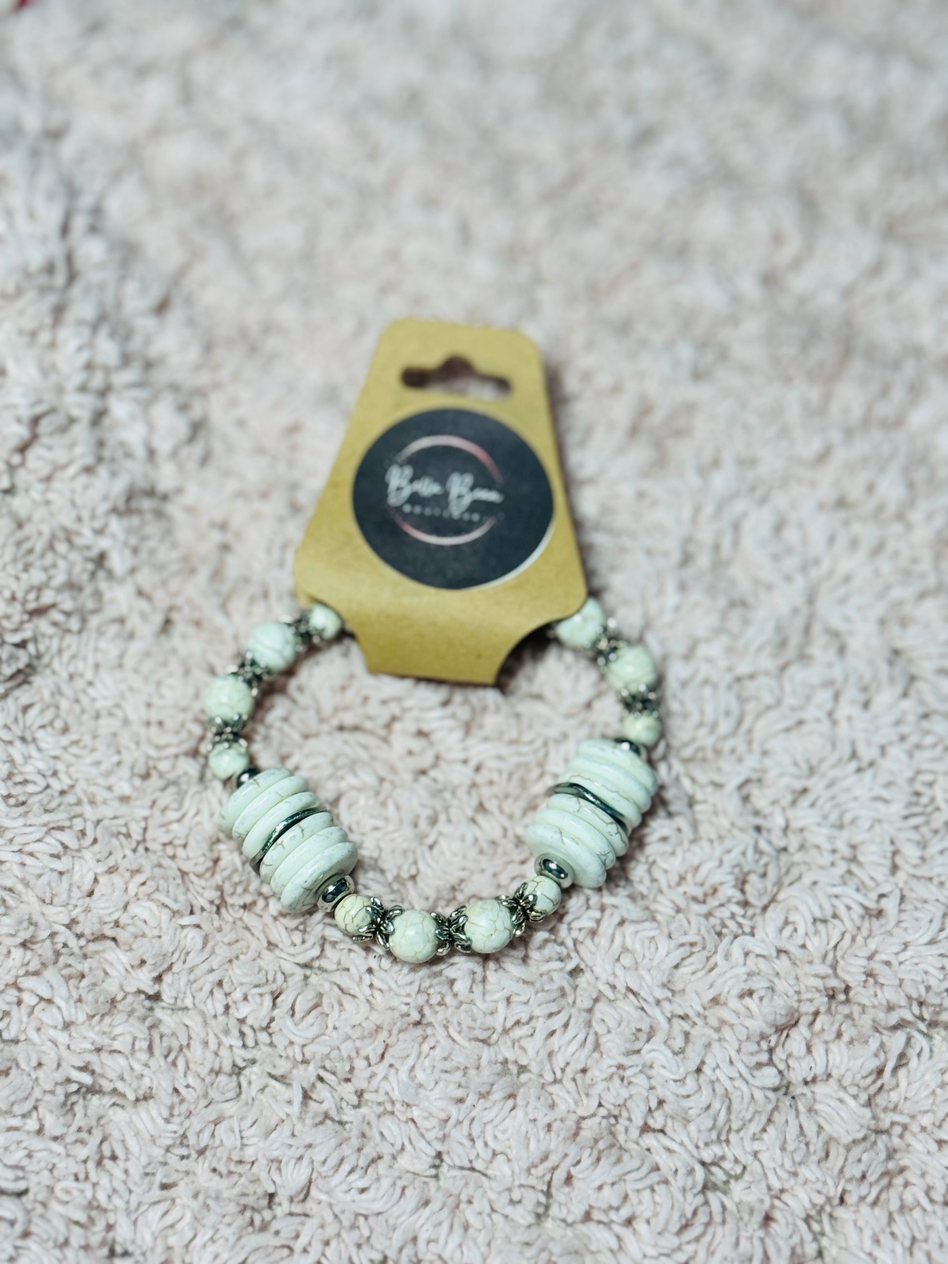 Add a touch of nature to your accessory game with the Rolling Sage bracelet. Made with white stones and silver accents, this bracelet exudes a calming and earthy vibe. Perfect for those looking to channel their inner zen (or stylishly stack with their other arm candy). Namaste, fashion lovers!