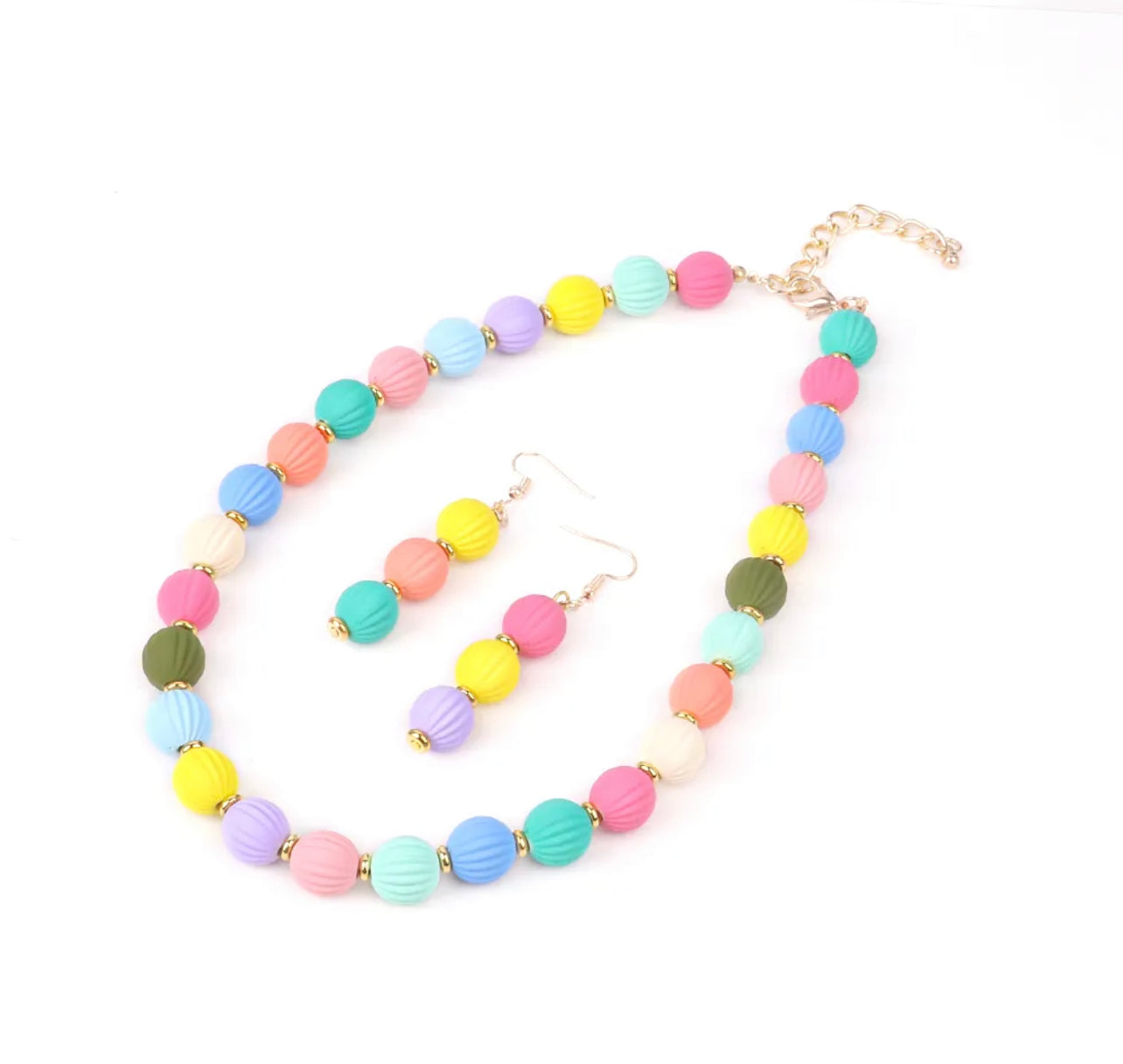 Add some sweetness to your look with this macaron-inspired necklace and earrings set! Adorned with the signature swirls of the beloved pastry, it's the perfect way to show off your playful style. Now you can snack without the guilt! (Sheesh, who knew jewelry-eating was a thing.)