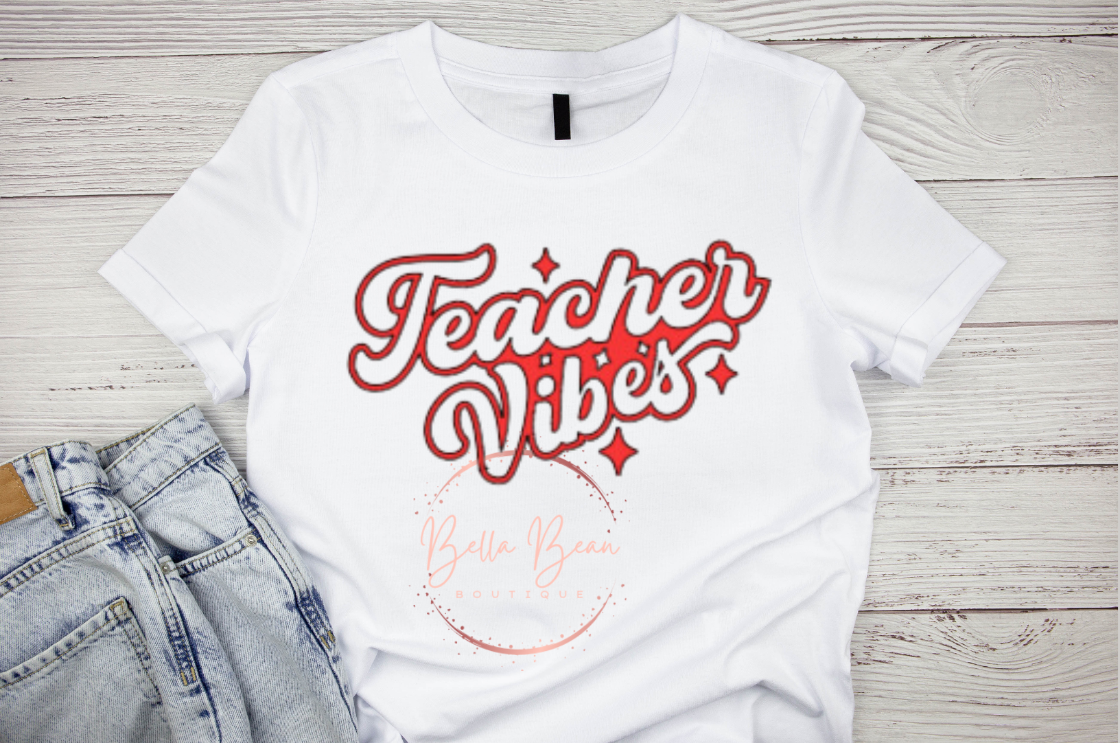 Make class time stylish with Teacher Vibes! This graphic tee will look great while showing off your status as an educator. Put the 'teach' in fashionable with this unique top! 🤓