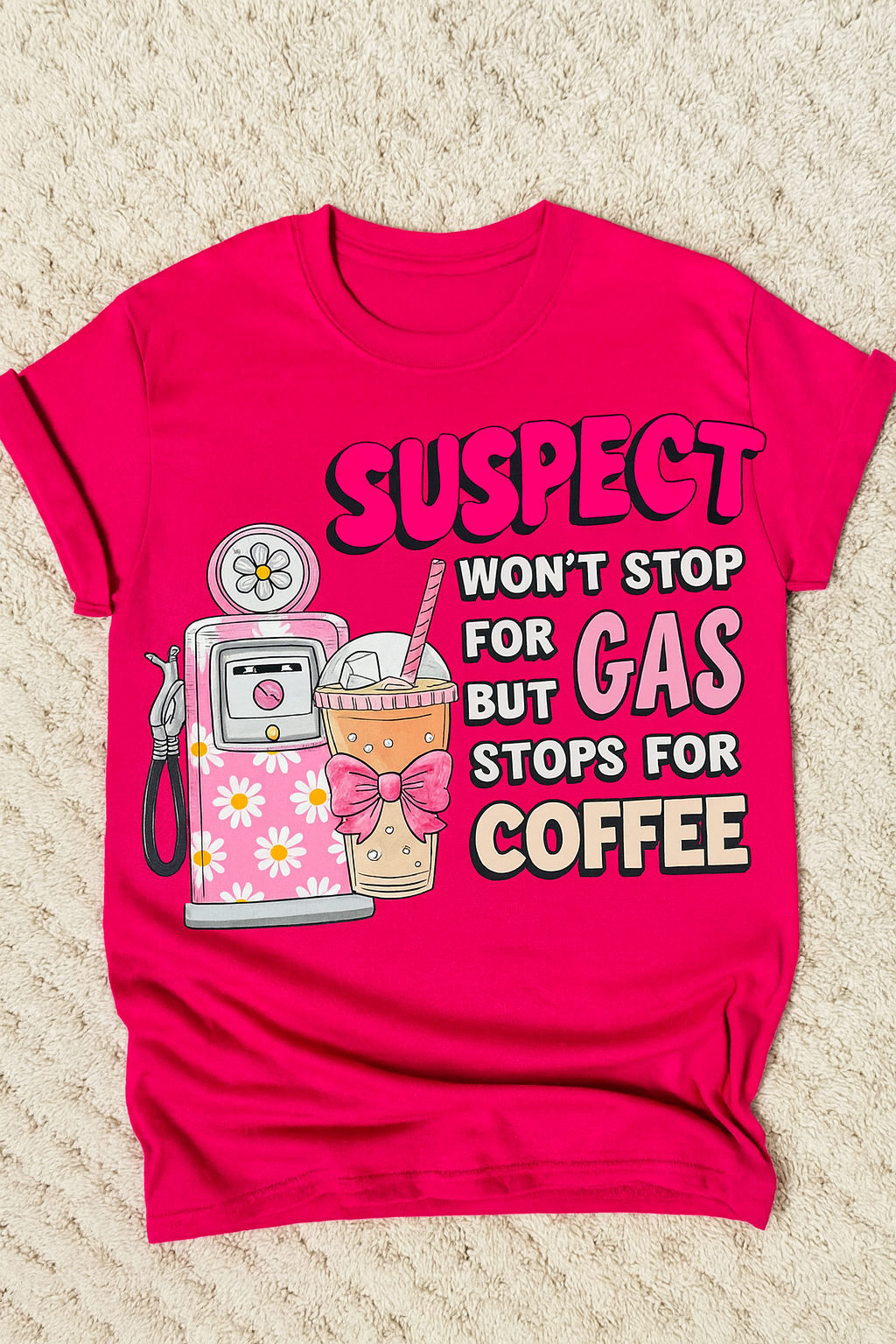 The Suspect: the perfect t-shirt for those who love coffee and avoiding mundane tasks like getting gas. Keep it cool and quirky with this playful design inspired by those who always seem to be on the run. (Fuel up on style with this suspect shirt. Coffee sold separately.)