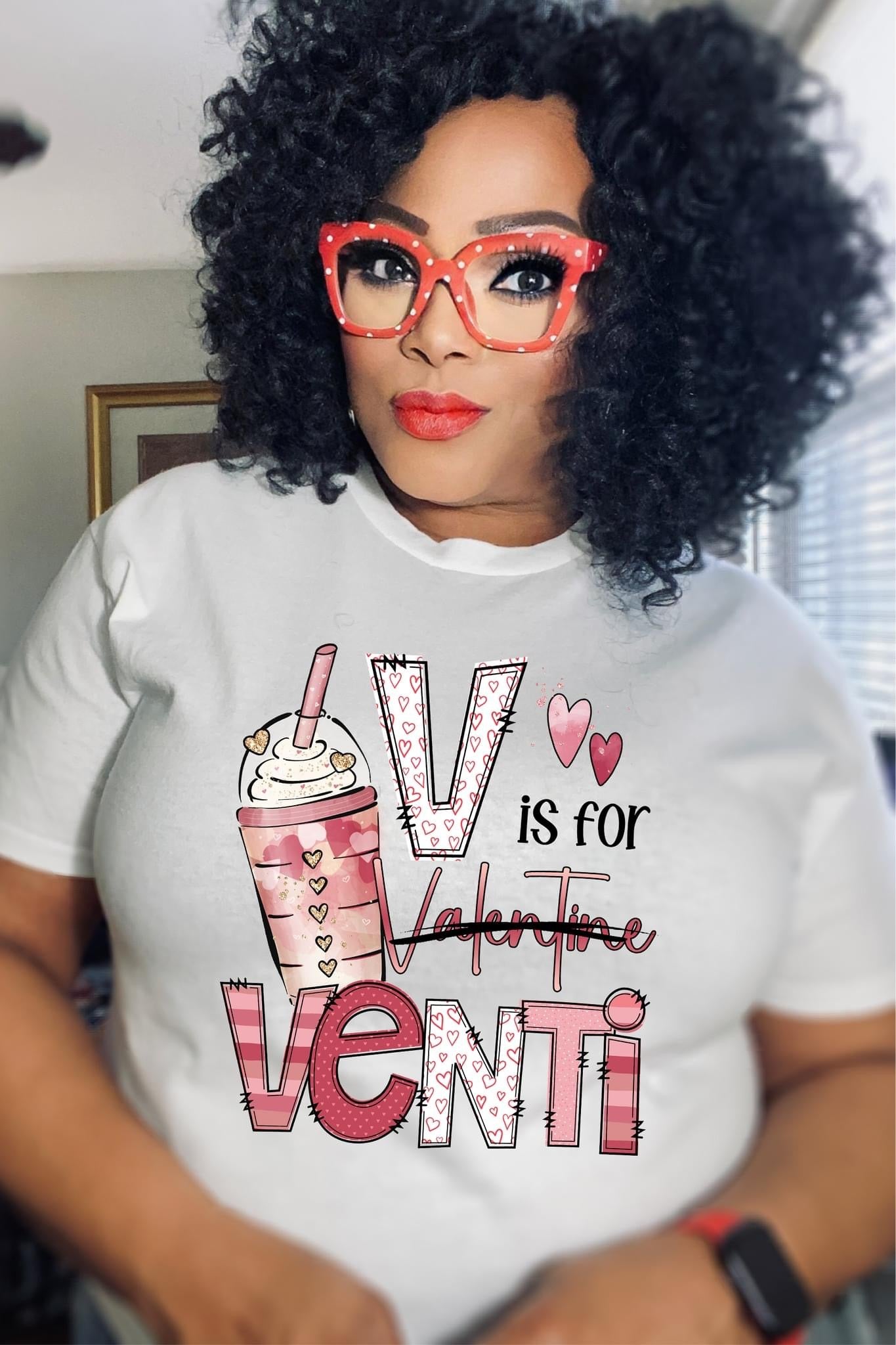 Express your love for coffee and Valentine's Day with our V is for Venti graphic tee. Perfect for the coffee lover in your life! (Pun intended)