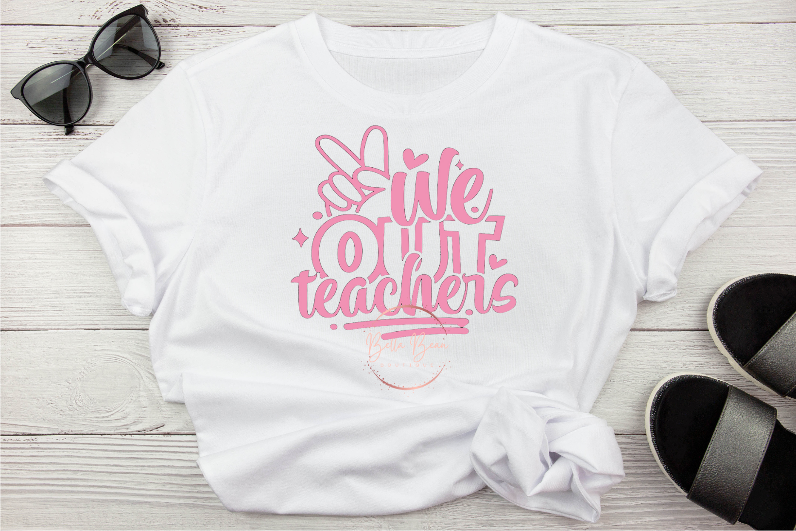 Be ready for the last days of school with We Out! This stylish graphic t-shirt features a cheeky teacher saying goodbye to students with a fun "We Out" message. Stand out and show off a little sass in this comfy tee! Perfect for finding out what summer has in store!